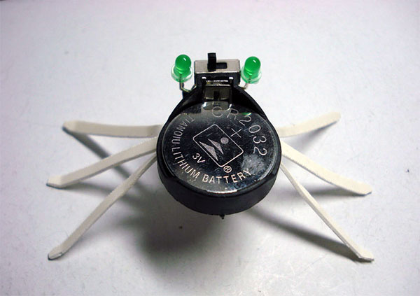 这是一个振动机器人,即以偏心摆锤马达的震动效果作为挪动的动力,算是一种非常简单的BEAM机器人。